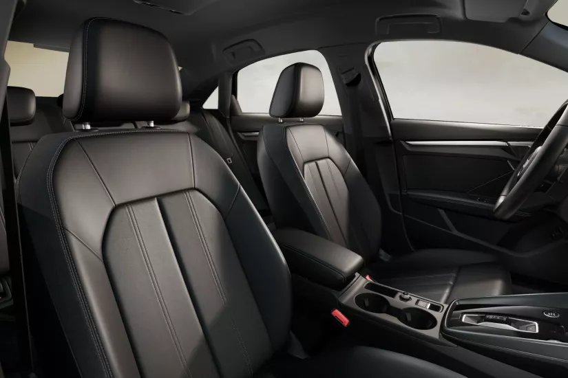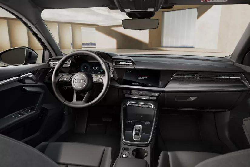 Desfrute de um excelente conforto de assento em um ambiente nobre. O acabamento do painel Alumínio Spektrum escuro de alta qualidade também enfatiza o interior esportivo e elegante do novo Audi A3 Sedan.