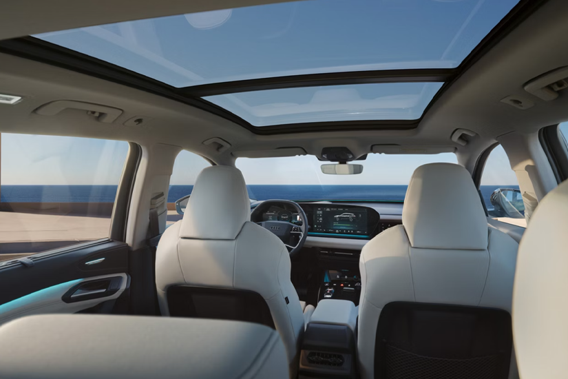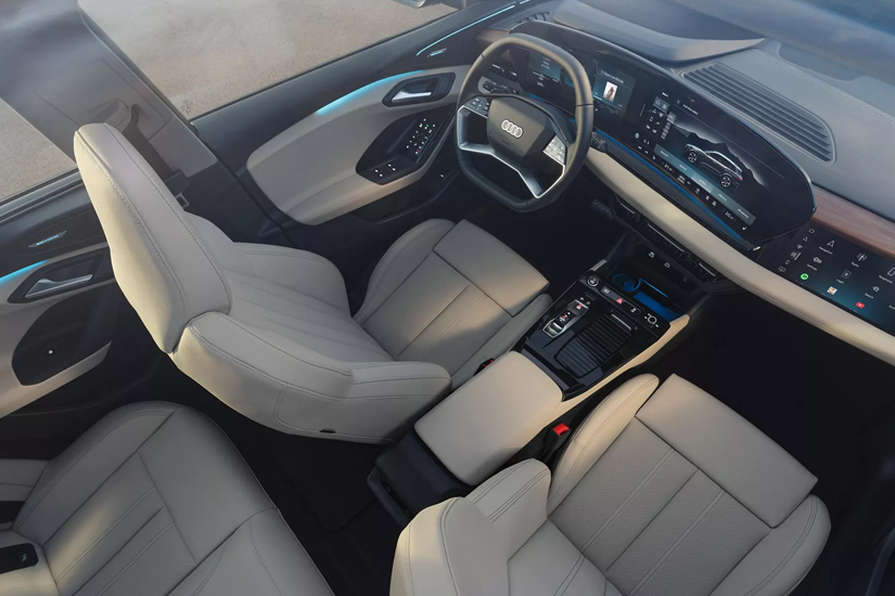 Um conceito de interior completamente novo está sendo realizado com o Audi Q6 e-tron. O design estruturado com materiais de alta qualidade cria clareza visual com uma sensação futurística.
